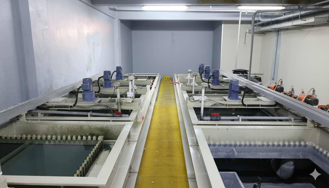 廢水處理技術與系統 | Wastewater Treatment Technology & System 在全球環保標準日益提升的趨勢下,山虹科技以創新的廢水處理技術與精密設計的處理系統,確保工業生產的環保責任。我們的技術不僅能有效降低污染物,還能進一步回收資源,實現環保與生產效能的雙贏。 首頁 / 廢水處理技術與系統 / 廢水處理設備升級 廢水處理設備升級 廢水處理自動設備 + 遠端監控設備 遠端監控系統 — 可於手機、電腦端管理。— 異常時自動通知。 設備處理量 — 由50噸/日 → 提升至 180噸/日— 確保生產無憂。 銅回收設備 新進銅回收設備 — 減少廢水中金屬含量,環保更友善。— 回收微蝕槽內的銅金屬,降低廢水處理成本。— 銅金屬可回收再利用,降低成本。